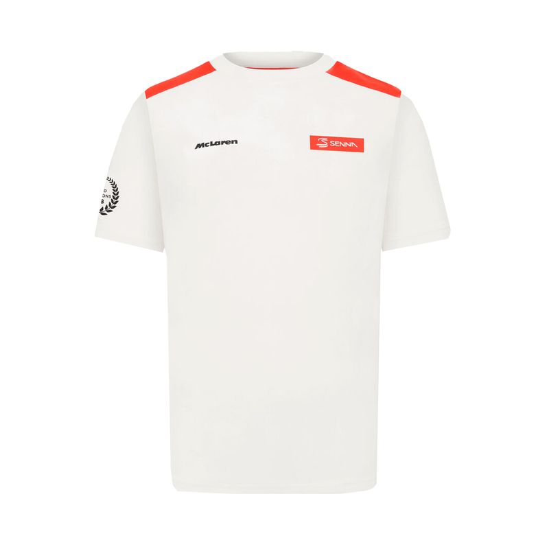 Inspirada no legado incomparável de Ayrton Senna, esta camisa é um tributo direto ao histórico título World Champions 1988. Com identidade forte e acabamento premium, a peça traz o logo McLaren no peito esquerdo e o logo Senna no lado direito. As faixas vermelhas nos ombros elevam o visual com elegâ...